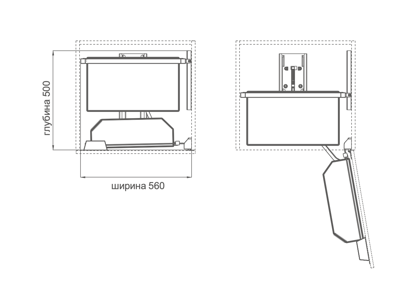 Конструкция механизма открывания дверцы позволяет выдвинуть всю корзину целиком, чтобы показать все предметы, находящиеся в шкафу.