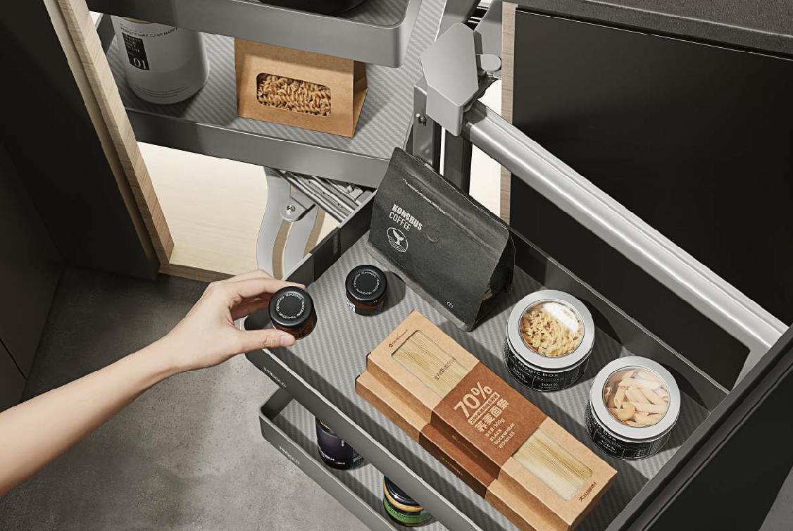 Исключительный опыт хранения в углу Используется угловое пространство кухни, чтобы “исключить хранение в глухих углах”, уменьшая необходимость сидеть на корточках и облегчая использование.