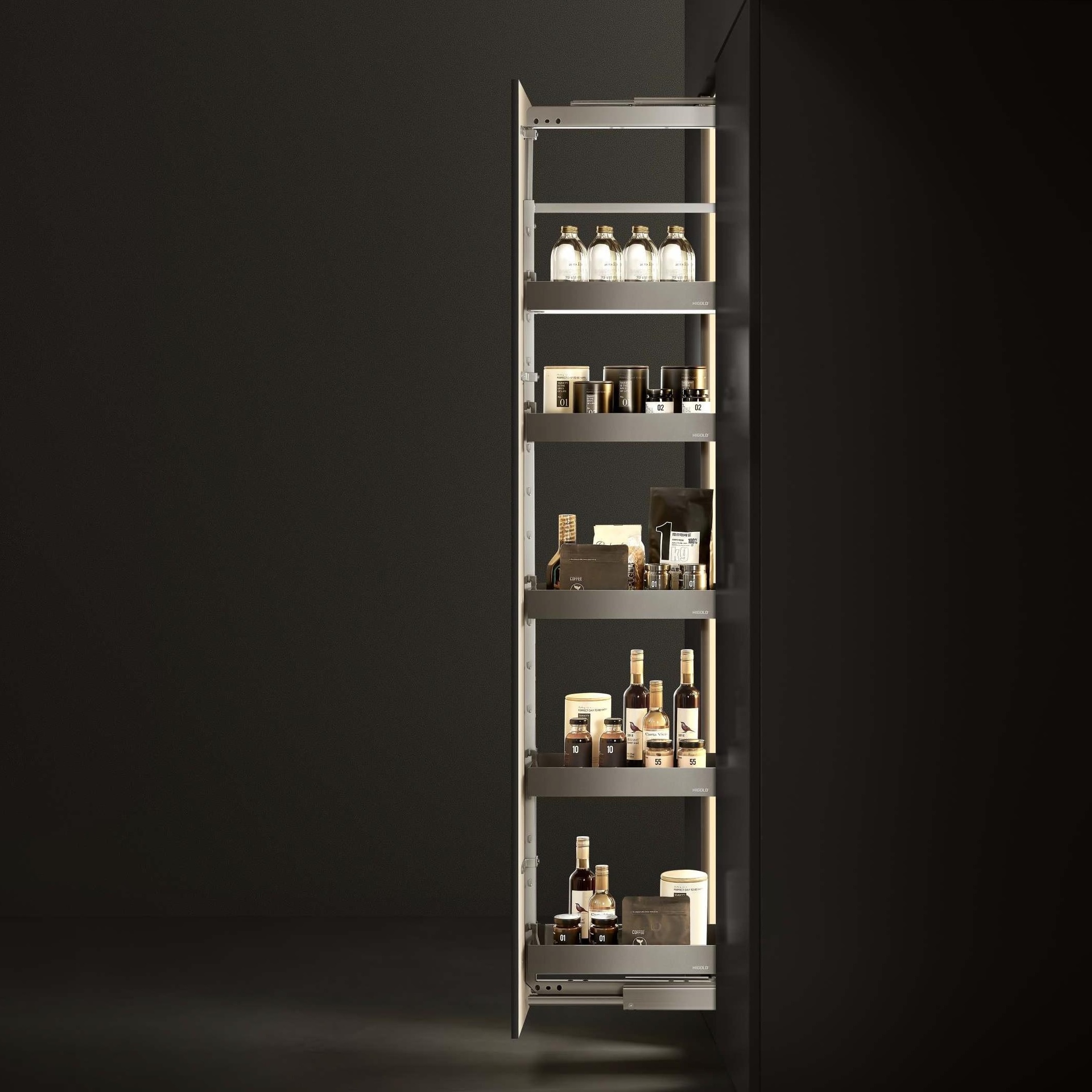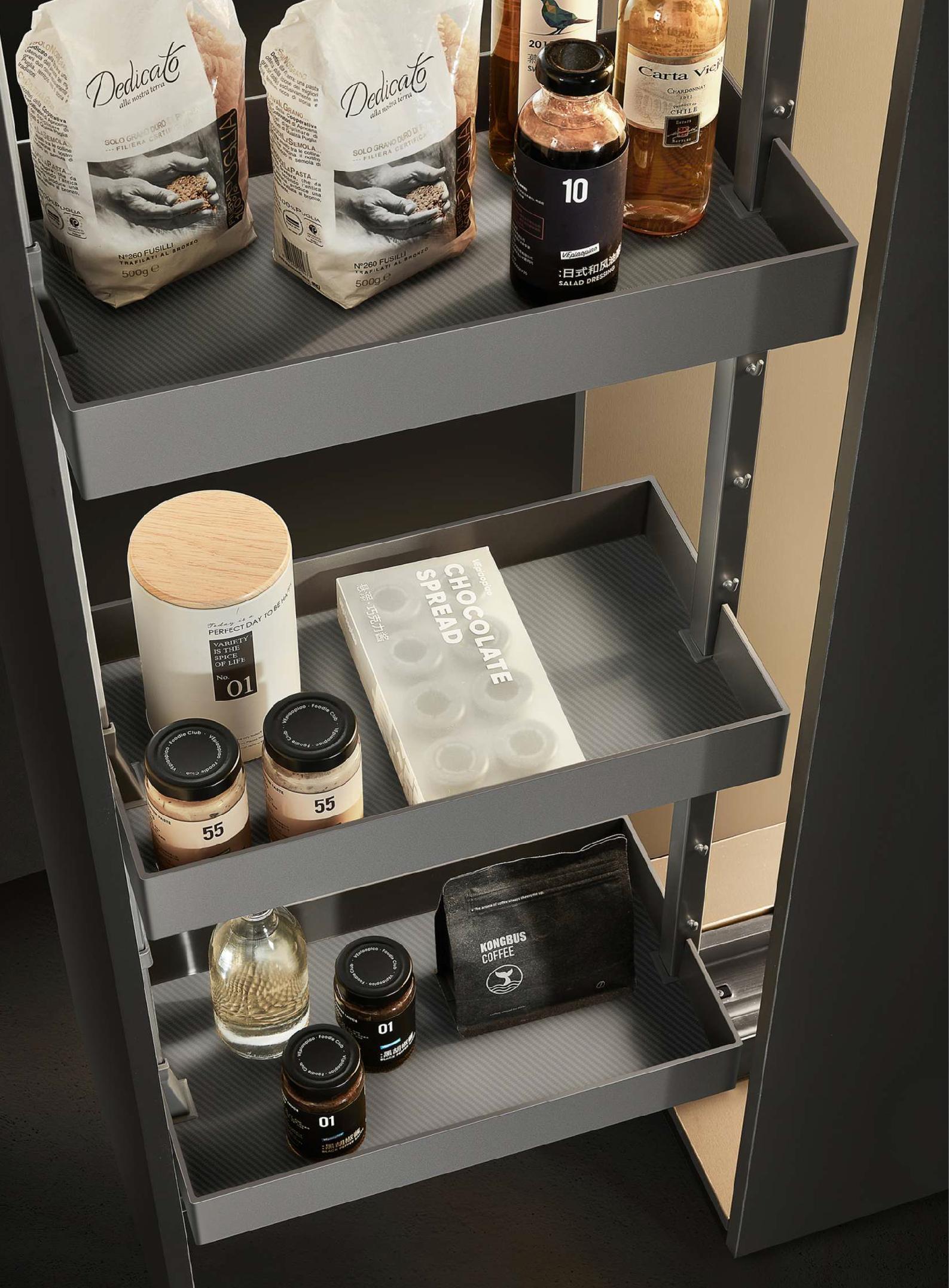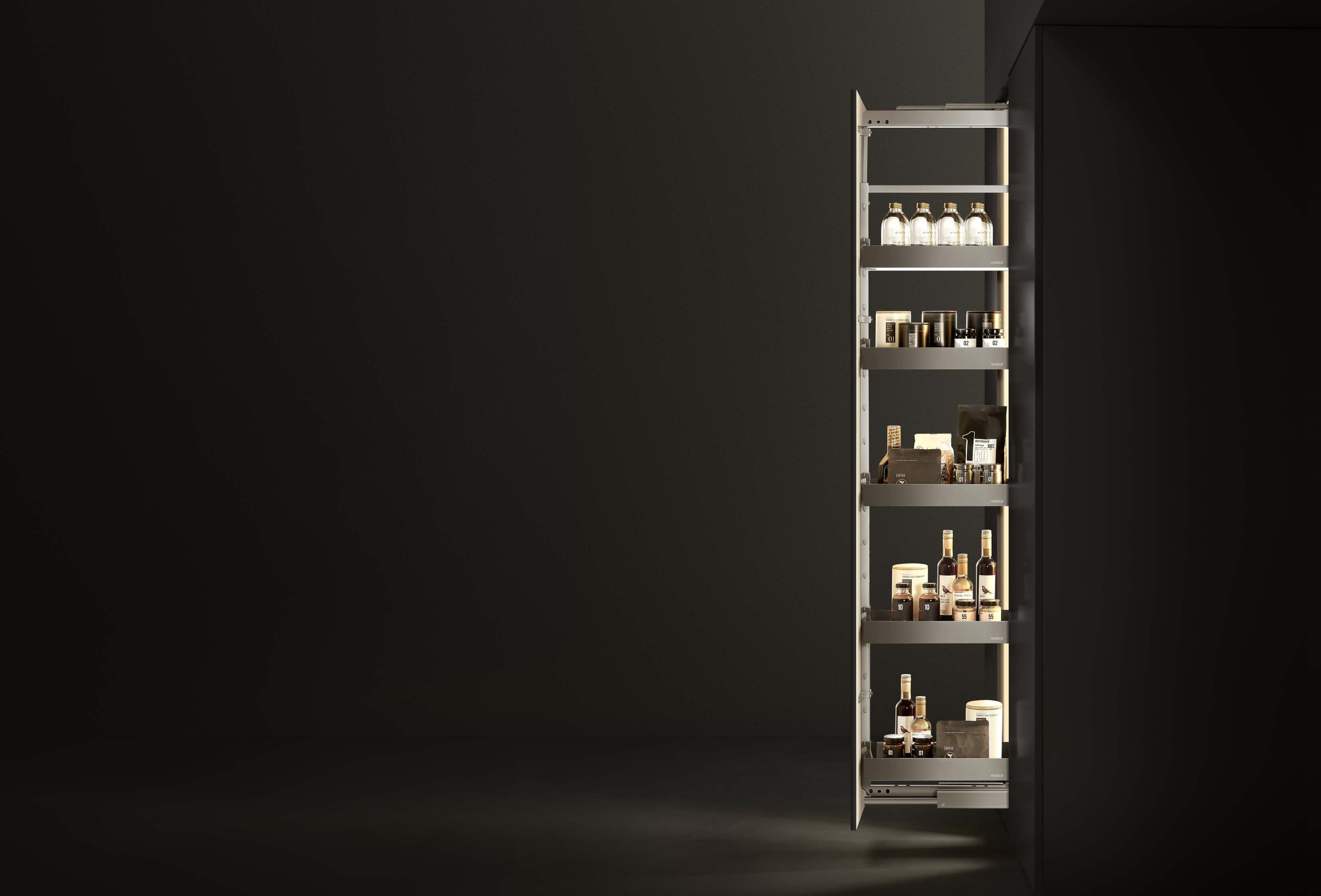 Выдвижная кладовая Shearer Tandem эффективно использует узкое кухонное пространство для хранения вещей и делает его более удобным для хранения.