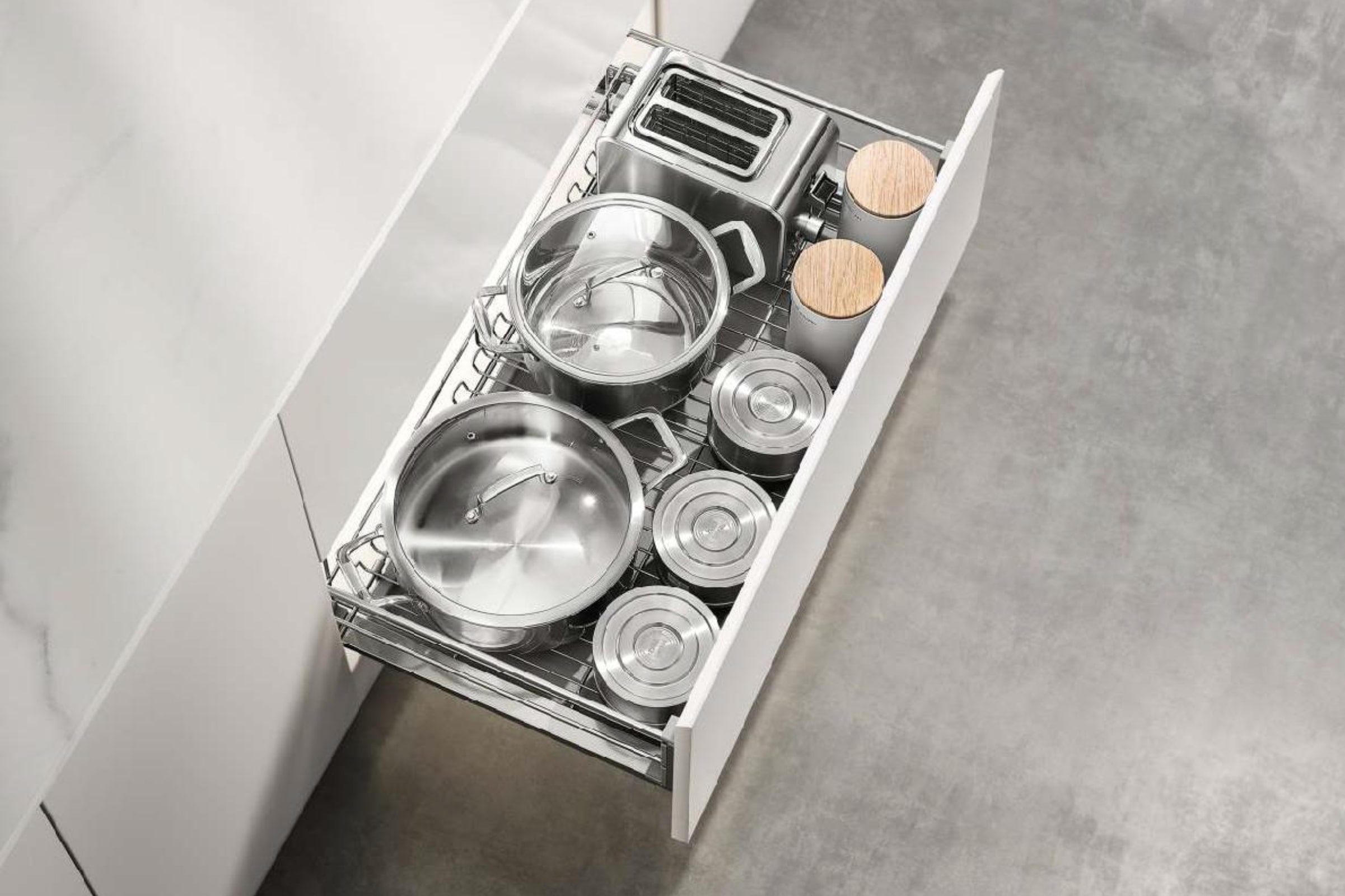 Новый дизайн модуля позволяет увеличить пространство для хранения посуды, делая хранение более удобным и практичным.