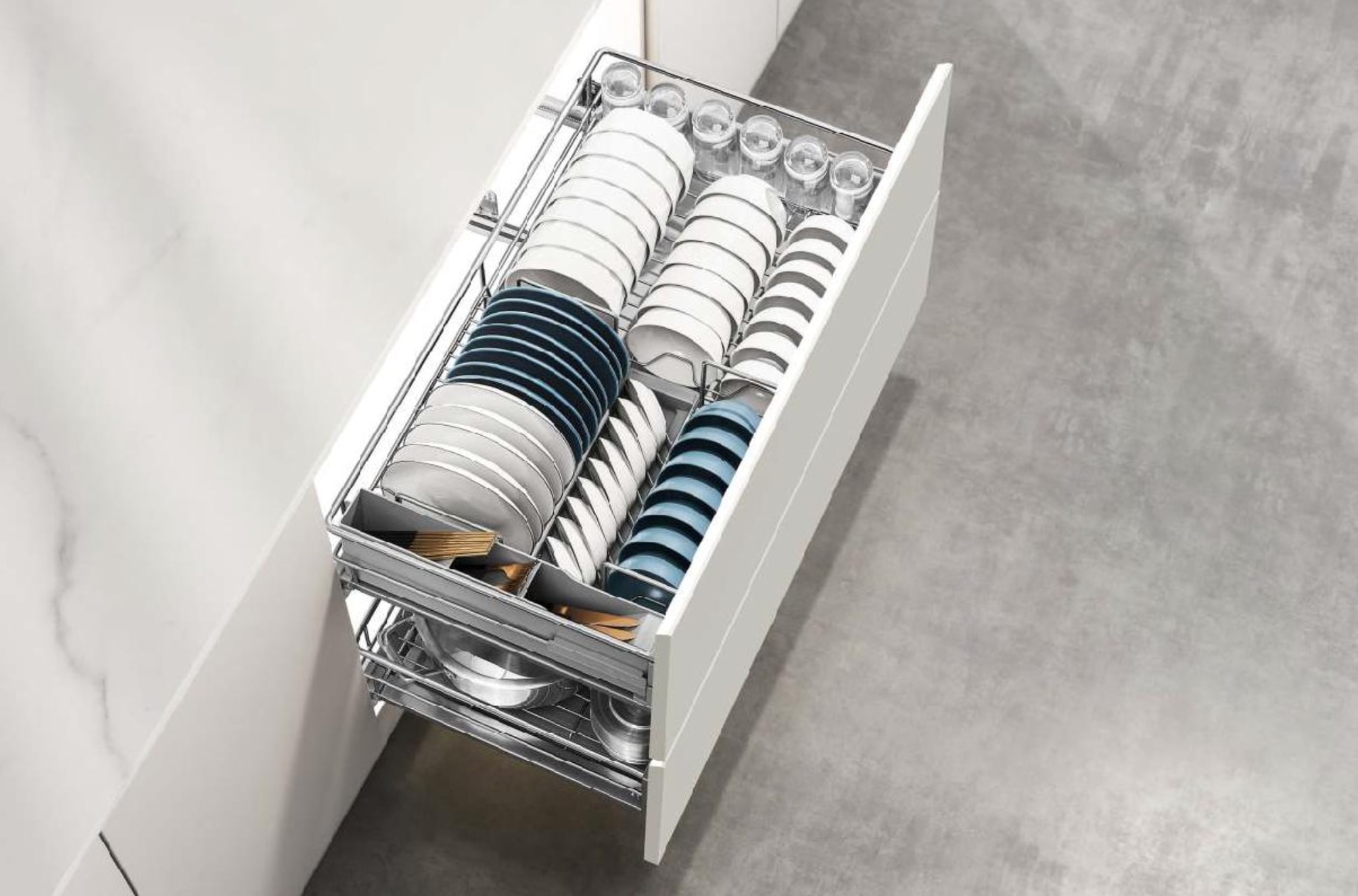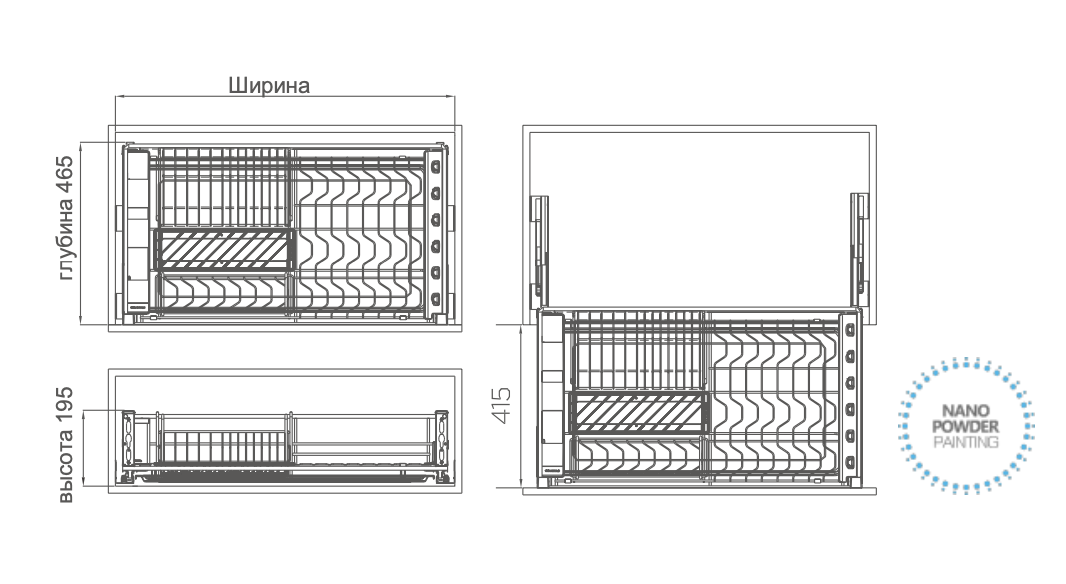 Новый дизайн модульа позволяет увеличить пространство для хранения посуды, делая хранение более удобным и практичным.