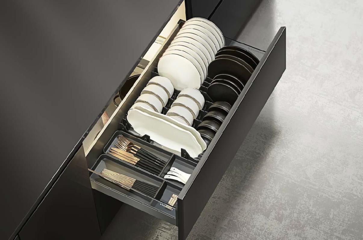 На двух уровнях имеется пять зон, каждая посуда имеет свою собственную зону, порядок расстановки и хранения понятен, и ее можно собрать в любое время, что избавляет от беспокойства и усилий, помогает потребителям выработать правильные привычки хранения и делает обстановку на кухне более опрятной.