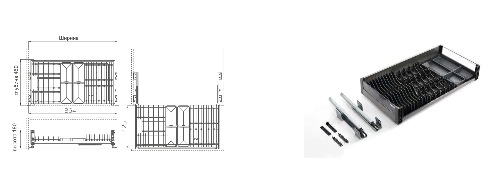 Благодаря инновационной многоуровневой конструкции для хранения с выдвижными ящиками и гибкими регулируемыми перегородками свободное пространство над выдвижным ящиком может быть освобождено для использования, так что неиспользуемое пространство может быть использовано для более креативного хранения, а выдвижной ящик может быть всесторонне усовершенствован.
